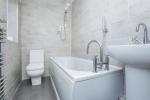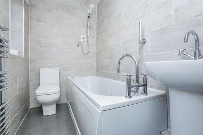 The stylish bathroom features a three-piece suite comprising W.C, wash hand basin and bath with shower unit overhead. This room has been fully tiled and completed to a fantastic standard.