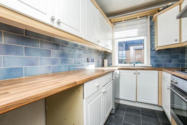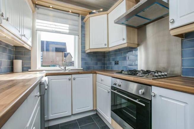 The integrated kitchen area features a range of base and wall-mounted units, attractive work surfaces, splash back brick effect tiling, integrated oven & gas hob and space for additional appliances.