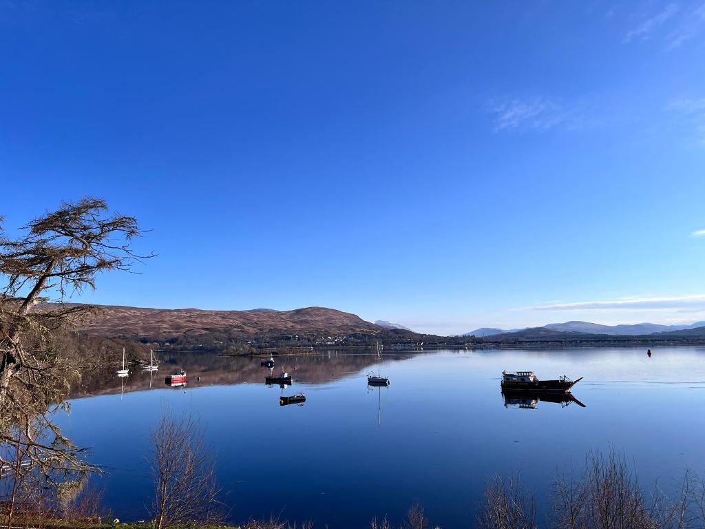 The Moorings is a charming, individually designed detached residence built in the traditional West Highland style in 2010, completed with a white harled exterior and enhanced by contemporary timber cladding, all beneath a natural slate roof. Set in a commanding position overlooking the dramatic meeting point of Loch Eil and Loch Linnhe, the property enjoys captivating vistas towards Fort William and the majestic Ben Nevis beyond.