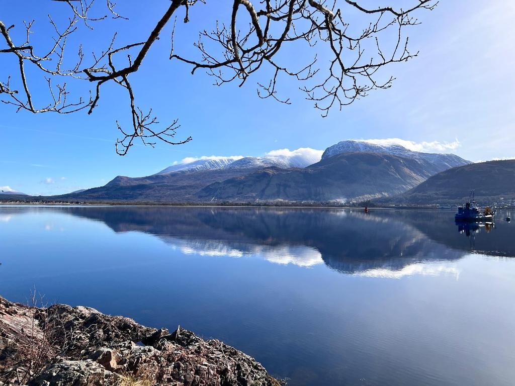 The Moorings occupies a truly idyllic coastal position within the hamlet of Camusnagaul at Treslaig, nestled on the northern shore of the confluence of Loch Eil and Loch Linnhe. This picturesque pocket of the West Highlands lies directly across the water from Fort William, just one mile as the crow flies, and enjoys spectacular views across the loch towards Scotland"s highest mountain, the iconic Ben Nevis.