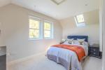 The first floor offers a galleried landing flooded with natural light from three Velux windows, an ideal space for reading, music, or a quiet sitting area. The principal bedroom includes an en suite dressing room with bespoke fitted furniture and a stylish en suite shower room. Three further bedrooms provide well-proportioned accommodation, each with fitted wardrobes or storage. A family bathroom with both a bath and a shower completes the upper level.