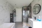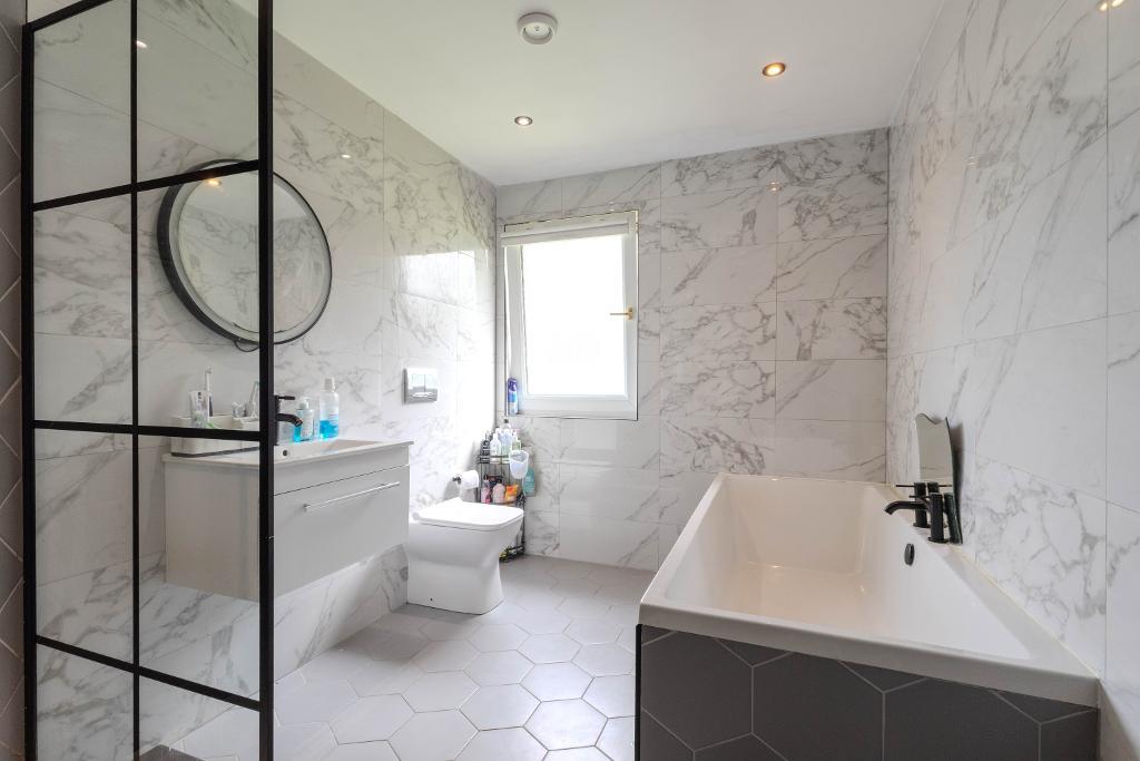 The ground floor further benefits from two additional bedrooms within the extension, providing excellent flexibility for guests or multigenerational living. A contemporary family bathroom with a four-piece suite completes the lower level.