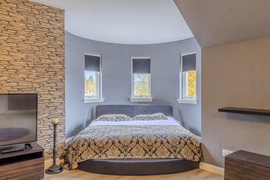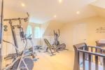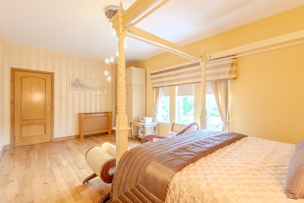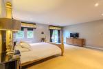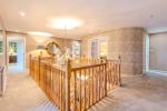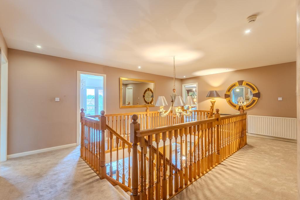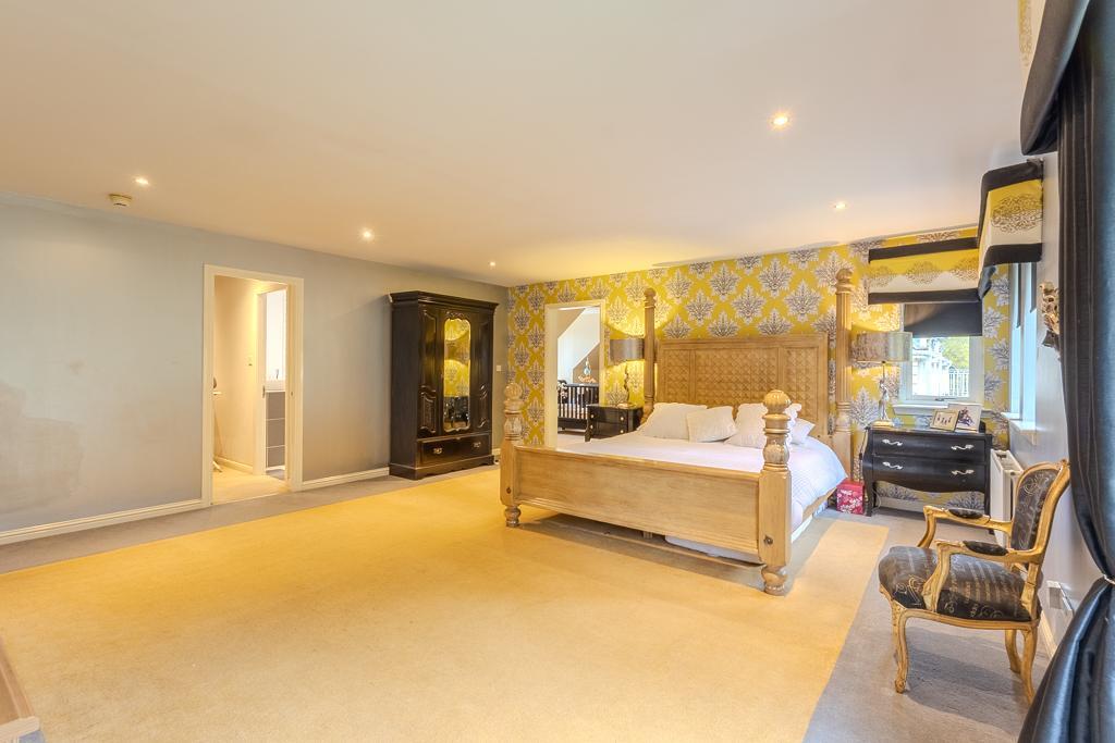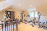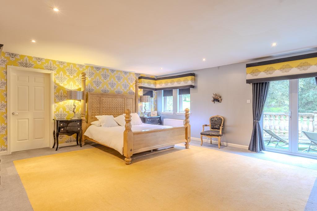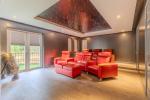 The impressive upper level offers six further well-proportioned bedrooms and four additional bathrooms, providing ample space and flexibility for family and guests alike. The principal bedroom suite features a walk-in wardrobe and access to a superb balcony that spans the width of the rear elevation, shared with the cinema room and games room, offering wonderful views over the neighbouring golf course. To the front of the property are two beautifully appointed bedrooms, one distinguished by an attractive circular turret feature and linked to the adjoining room by a stylish Jack and Jill en suite shower room. The smaller of the two enjoys a touch of luxury, with elegant French doors opening onto a private balcony, a delightful spot to relax and enjoy the outlook.