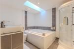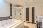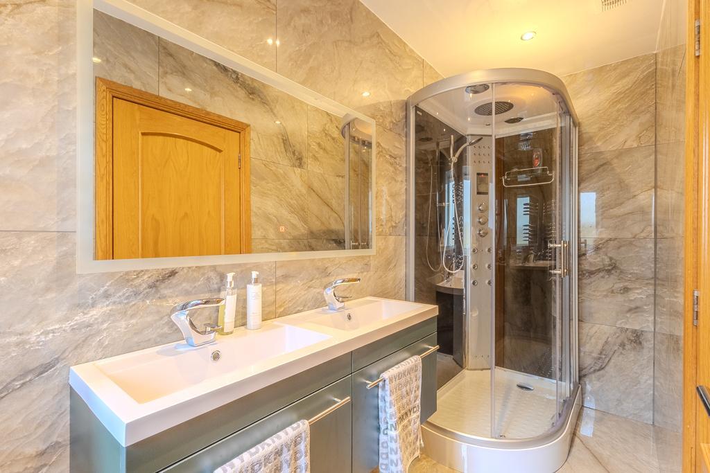 The ground floor further benefits from a substantial games room with a bar area, a well-proportioned front-facing bedroom with a luxurious en suite shower room complete with double sinks, a useful study/home office, a cloakroom WC, and extensive storage throughout.
