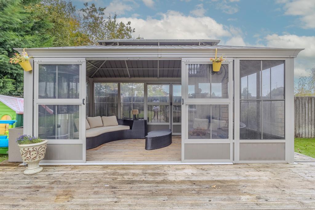 Externally, the property continues to impress. The rear garden has been thoughtfully landscaped to create a private and versatile outdoor space with a mix of lawn and paved areas, ideal for entertaining or relaxing. A spacious summerhouse complete with a log burner provides a charming retreat year-round. To the front, the property enjoys an attractive garden, a generous driveway offering ample off-street parking, and an integral garage.