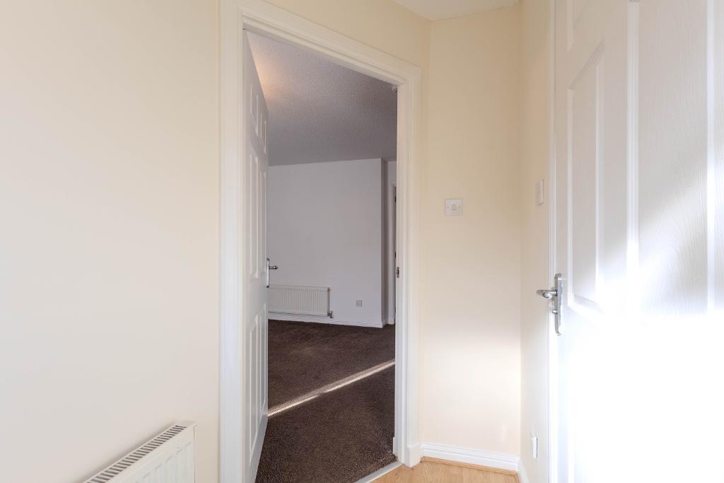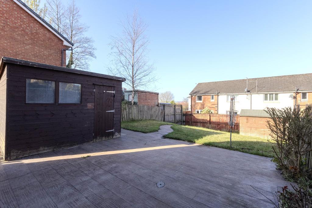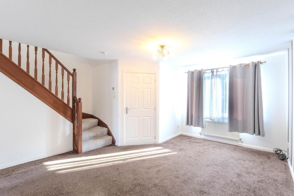 The home is approached via a neatly presented front garden, incorporating a small lawn and a mono-block driveway providing off-street parking for two vehicles, with additional parking available within the cul-de-sac.