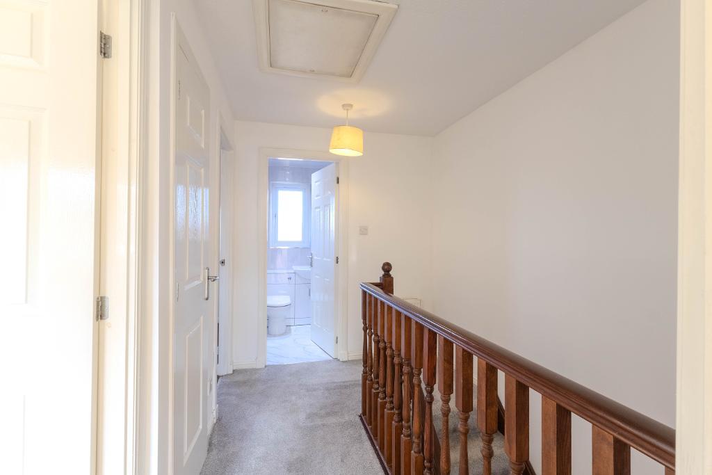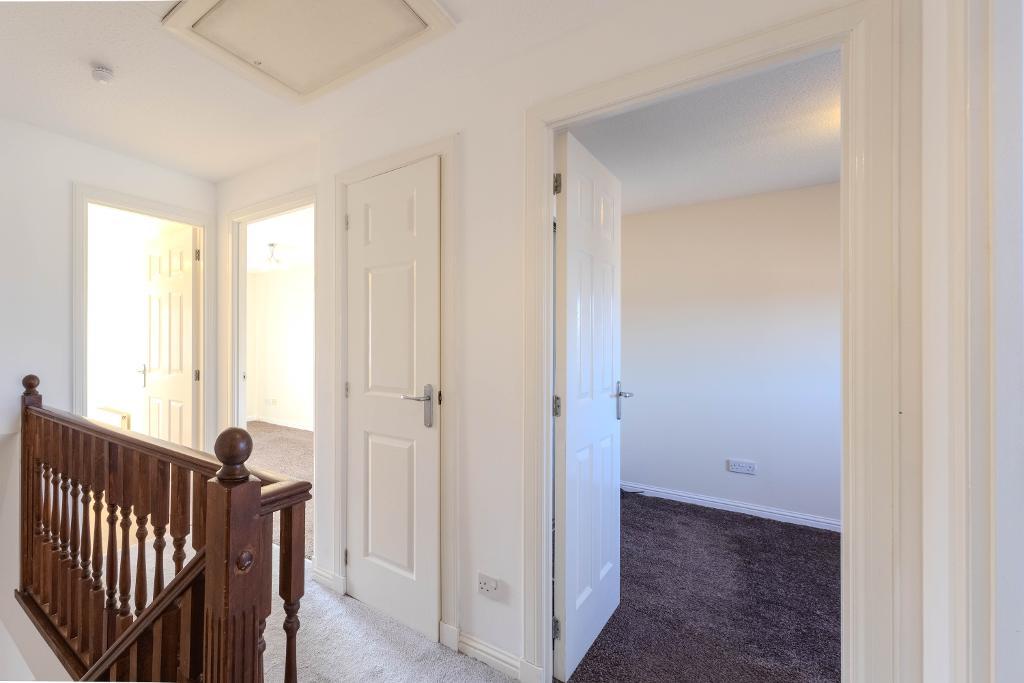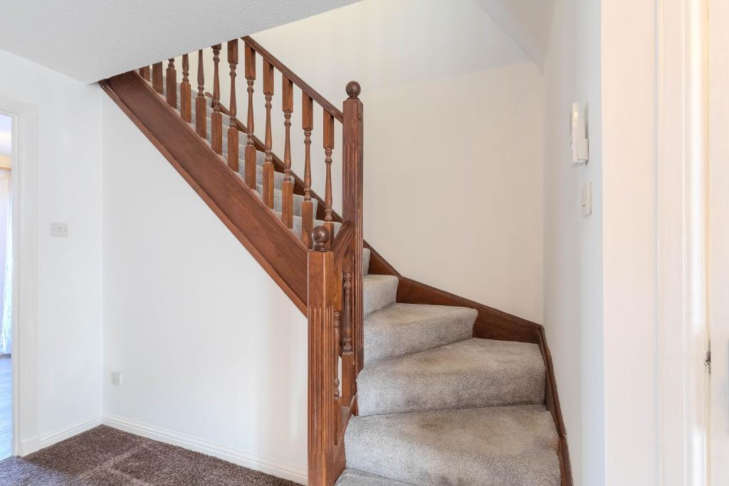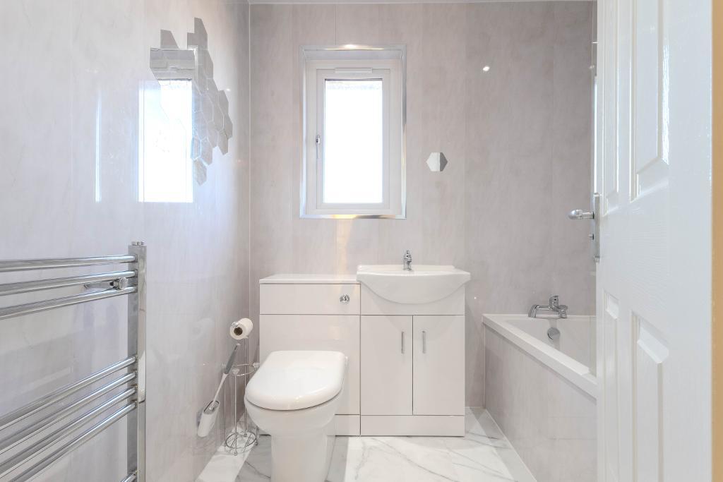 Upstairs, the accommodation comprises three well-proportioned bedrooms. The principal bedroom is a generous double with built-in wardrobes, while the second bedroom also offers double proportions and fitted storage. The third bedroom is a comfortable single room, again benefitting from a built-in cupboard. The family bathroom has been modernised and is fitted with a three-piece suite, including a bath with a shower over.