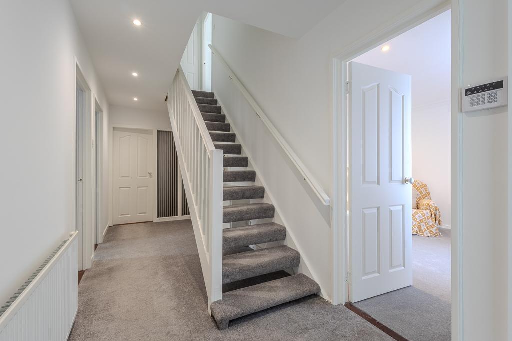 A staircase from the hallway leads to the upper level, where there are three further well-proportioned bedrooms, all benefiting from useful storage. A convenient upstairs WC, located off the landing, adds further practicality for family living, while an additional storage cupboard provides further space for household items.