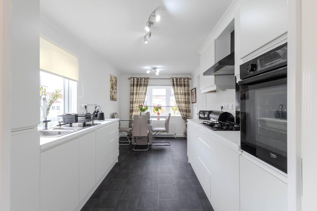 The property is thoughtfully designed and finished to a high standard throughout. At its heart lies a bright and spacious open-plan kitchen and dining area, creating a welcoming and sociable environment ideal for both everyday living and entertaining. The well-appointed kitchen features a range of modern units and integrated appliances, offering excellent storage and workspace, while a separate utility room provides valuable additional practicality.