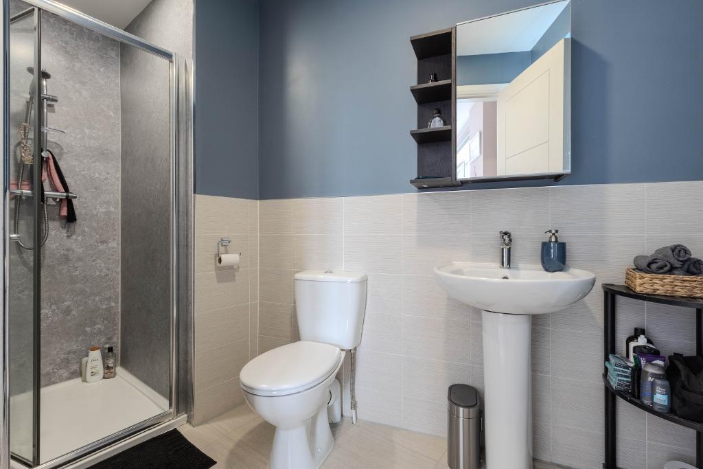 Completing the accommodation is a stunning family bathroom, fitted with a modern three-piece suite, alongside convenient storage located near the entrance, enhancing practicality.