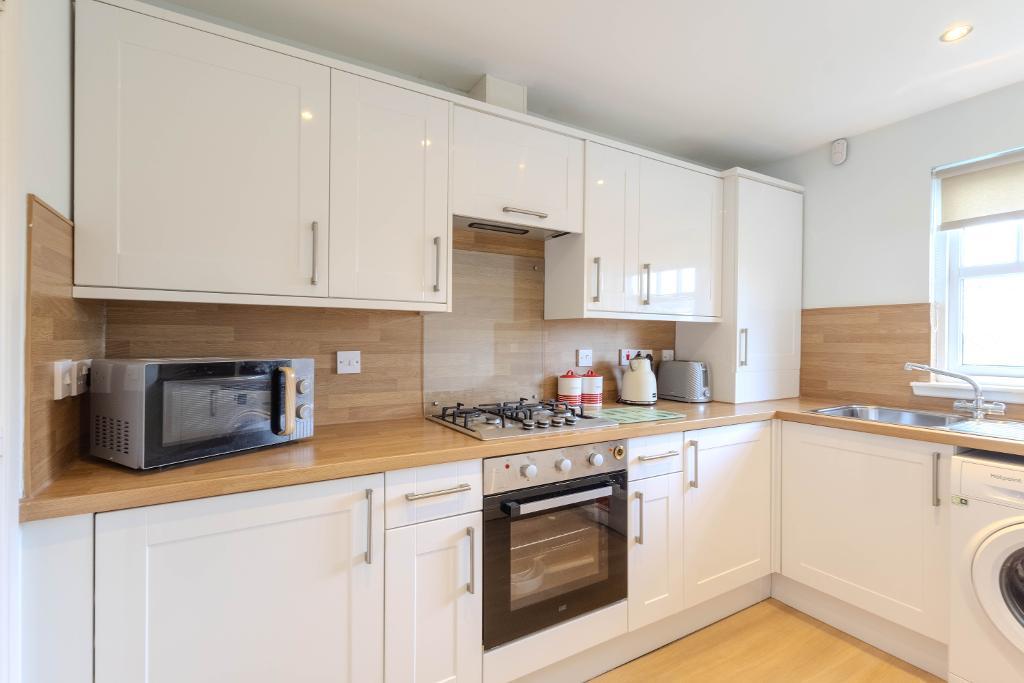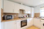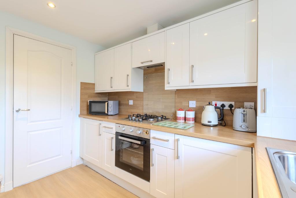 The kitchen is thoughtfully designed and fitted with a range of contemporary wall and base units, complemented by integrated appliances and ample worktop space, making it both functional and stylish.