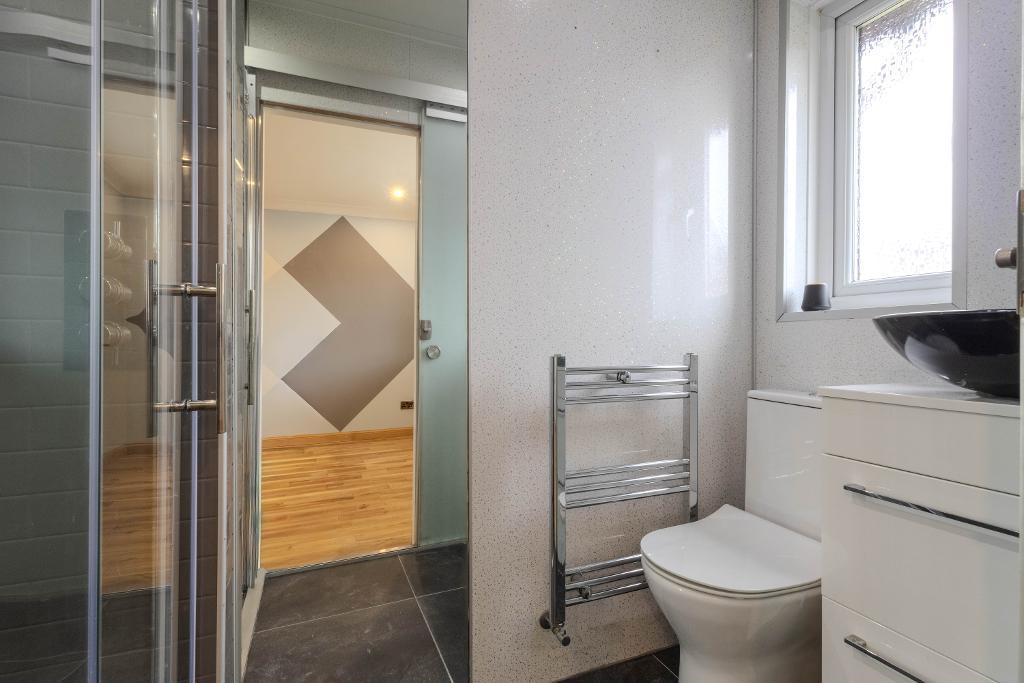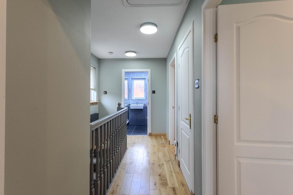 Upstairs, the property continues to impress with three well-proportioned bedrooms. The principal bedroom benefits from fitted wardrobes and a stylish en suite shower room. The family bathroom has been thoughtfully upgraded and now comprises a modern shower room, complete with a bespoke suspended ceiling.