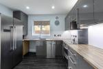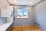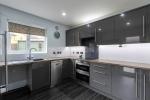 The kitchen is fitted with a contemporary range of wall and base units, complemented by integrated appliances and ample worktop space, offering both style and functionality.