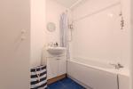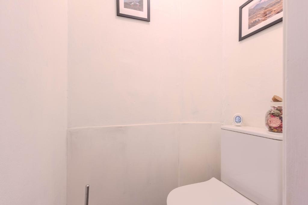 The bedroom is well-proportioned and comfortably accommodates a double bed, while the bathroom is fitted with a bath and vanity unit. A separate WC adds further practicality.